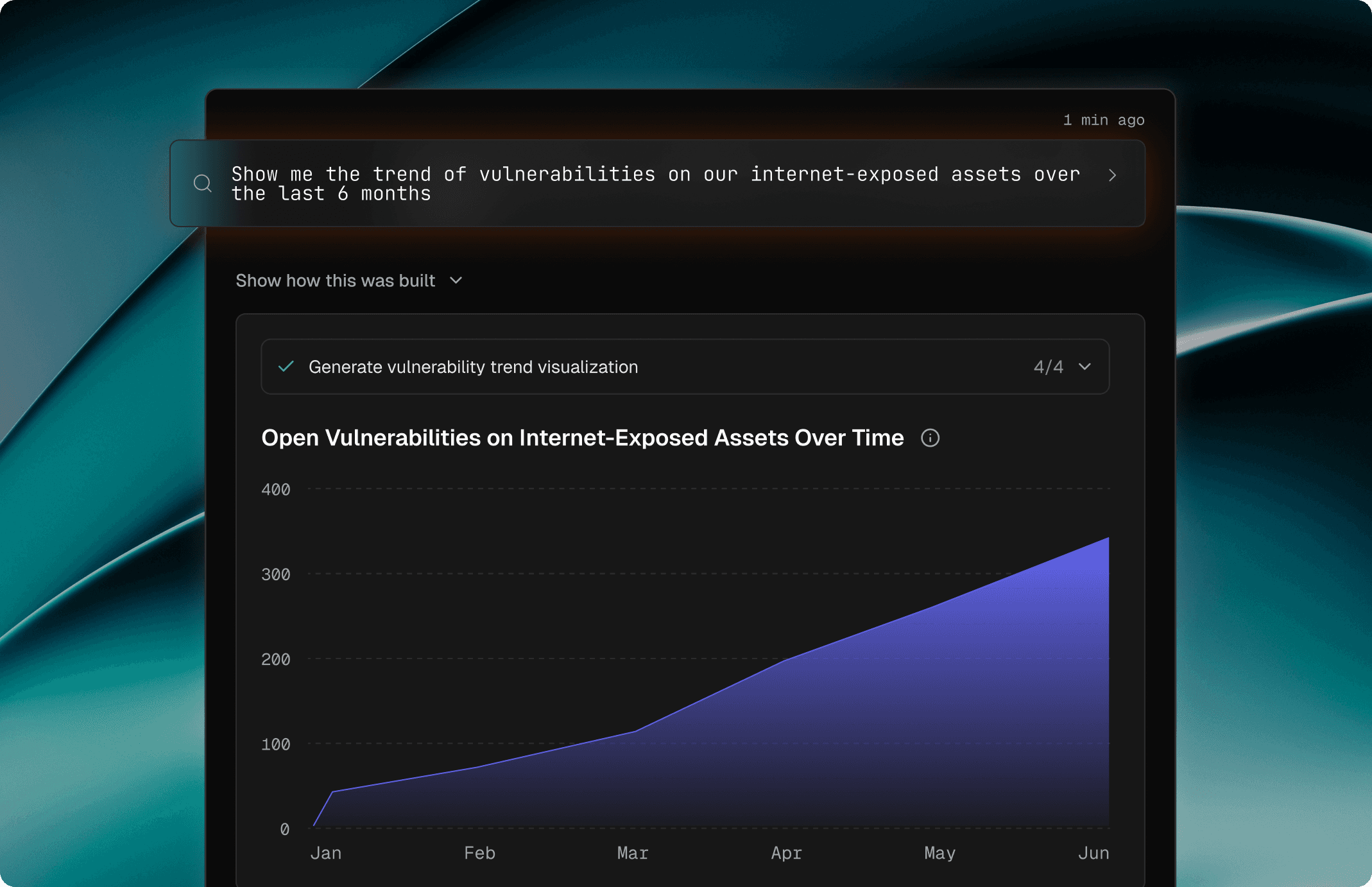 Simply describe what you want to see, e.g. “Show me critical vulnerabilities by business unit over the last 30 days” or “Compare MTTR across cloud providers” and Chart Agent instantly generates the visualization you need. No query language. No dashboard experts. No waiting.