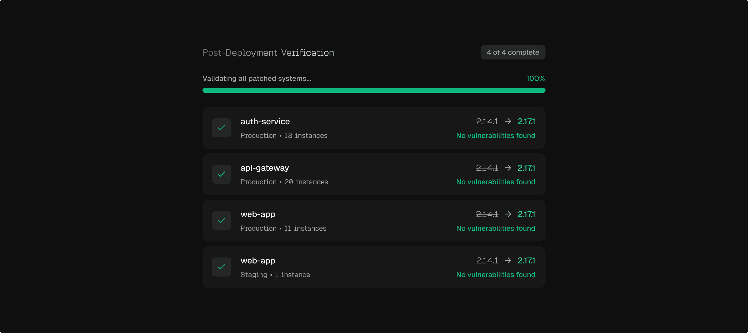 Every closed vulnerability includes auditable, timestamped proof that can be retrieved in the future.