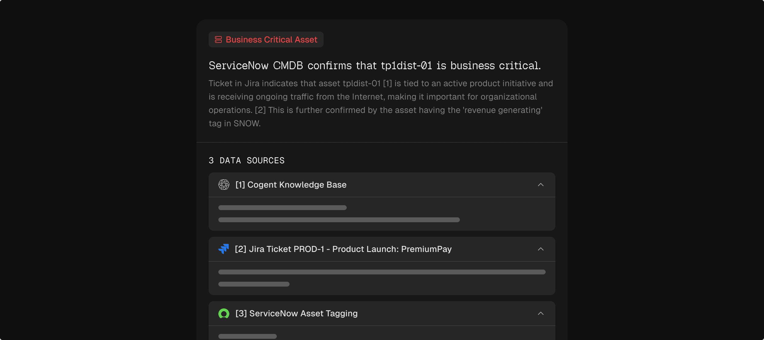 Cogent's AI agents analyze the threat landscape, exploitability in your environment, and business impact to produce risk scores grounded in your environment, not just CVSS severity.